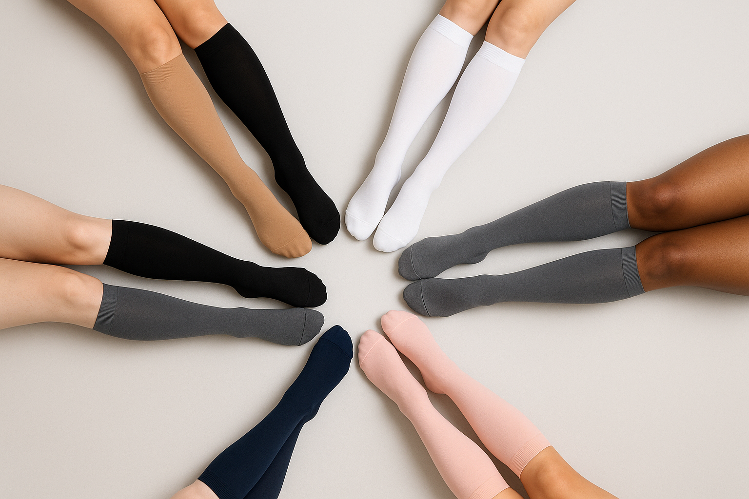 Im Gegensatz zu sportlichen Kompressionssocken mit einem brutalen Druck von 30-50 mmHg verwendet Velora eine sanfte, abgestufte Kompression von 15-20 mmHg, die speziell für Frauen mit geschwollenen Beinen entwickelt wurde. Unsere Socken sind einfach anzuziehen (kein Ringkampf!), halten den ganzen Tag und bieten Linderung ohne Schmerzen. Wir konzentrieren uns auf Komfort und Effektivität, nicht darauf, Ihre Beine einfach nur zusammenzudrücken.